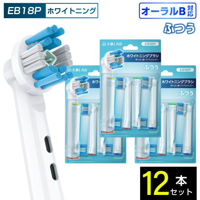 互換LAB オーラルB用 替えブラシ ブラウン互換 ホワイトニングブラシ EB18P 12本 着色汚れ ふつう ブラシ 替えブラシ 電動歯ブラシ カラーリング 歯垢除去 歯茎 歯茎ケア おすすめ 口腔ケア デュポンナイロン ステイン 口臭 口臭ケア ホワイトニング 美白 ホワイト 送料無料