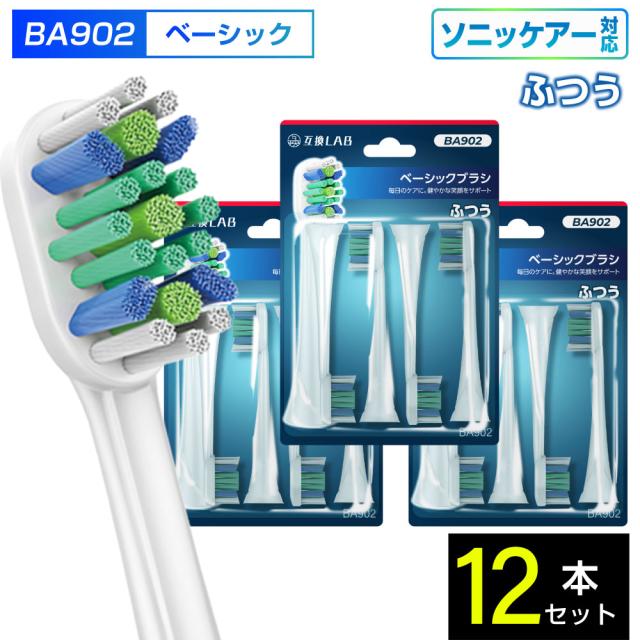 互換LAB 互換ブラシ フィリップス ソニッケアー 電動歯ブラシ 替えブラシ 対応 ベーシック ふつう BA902 12本入 ふつう 替えブラシ 電動歯ブラシ 歯垢除去 歯茎 歯茎ケア おすすめ 口腔ケア ナイロン ステイン 口臭ケア 送料無料