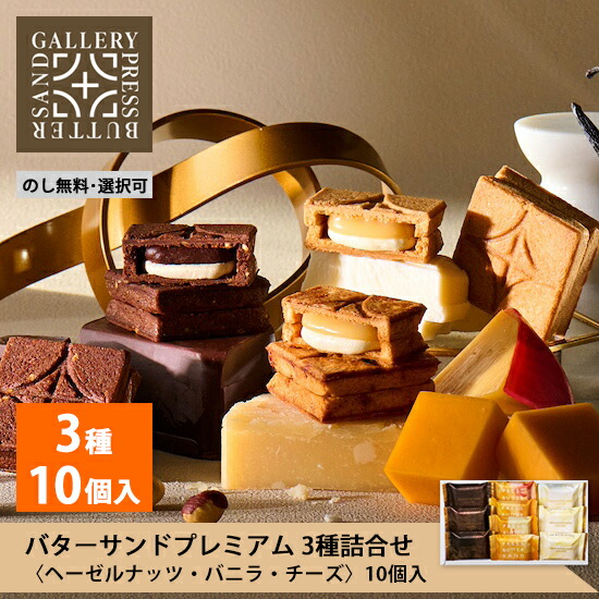 PRESS BUTTER SAND バターサンドプレミアム 3種詰合せ 〈ヘーゼルナッツ・バニラ・チーズ〉10個入 / 東京 土産 人気 お菓子 洋菓子 焼き菓子 ギフト プレゼント 詰め合わせ 誕生日