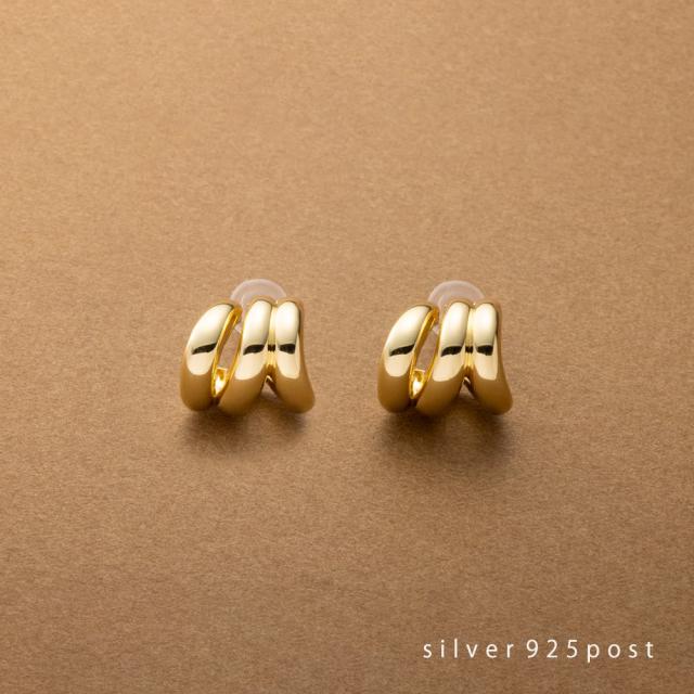 【ゆうパケットOK】 ピアス シルバーポスト SV925ポスト 低アレルギー レディース ぷっくり メタル 3連 小ぶり 変形 大人 華奢 ゴールド シルバー outlet