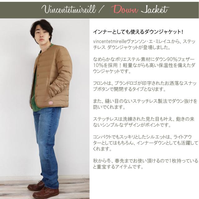 ヴァンソン エ ミレイユ VINCENT ET MIREILLE ステッチレス ダウンジャケット ( vm242sd26030 ) ライトアウター インナーダウン アウトドア プレミアムダウン 軽量 保温性 男女兼用 レディース メンズ 防寒着 暖かい おしゃれ アーベン