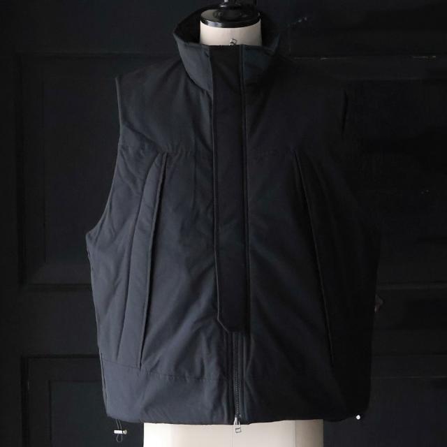 ■ Audience オーディエンス 商品詳細 60/40クロス Sorona Dupont(ソロナ/デュポン社製) 中綿 PCU LEVEL7 ベスト 近代ミリタリーアイテムの中でも希少価値の高い、ミリタリーベストの中でも傑作中の傑作と言われている” レベル7ベスト” がイメージソース。 米軍特殊部隊向けに作られた、PCU(Protective CombatUniform)の最強の防寒性能を誇るミリタリーベストです。 市場でも希少価値の高い、モンスターパーカーのベストバージョンでもある、斜めに取り付けられたフロントポケットデザインは秀逸です。 細かなディティールを踏襲しながら、現代的なシルエット、フィット感にアップデートしました。 モンスターパーカーの仕様でもある、フロントジップを隠す前立てをプラスして、フロントジップを開けて着用した際のバランスも考慮しております。 全体的にゆとりを持たせた作りなので、オーバーサイズなスウェット類の上だけでなく、ジャケットや軽いブルゾンの上からも羽織る事ができ、新しいレイヤードスタイルが可能な一着に仕上がっています。 裾のドローコードを絞ったスタイリングもオススメです。 |