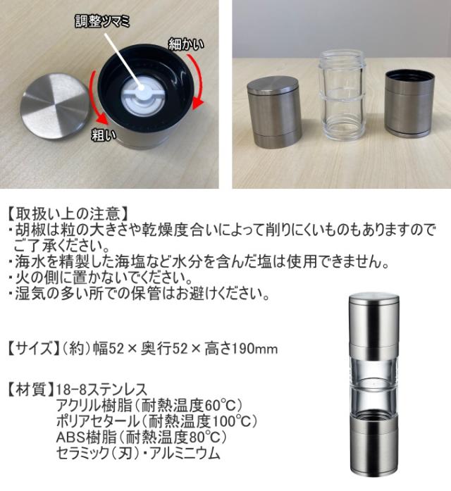 ツイン ソルト&ペッパーミル 送料無料 ミル 挽く 胡椒 おしゃれ 容器 調味料入れ キッチン用品 SALUS 佐藤金属興業