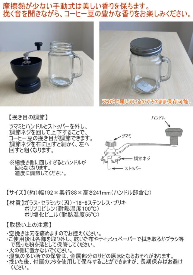 コーヒーミルジャー 送料無料 ミル コーヒーミル 挽く 手動式 コーヒー 珈琲 フタ付き キッチン用品 佐藤金属興業 SALUS