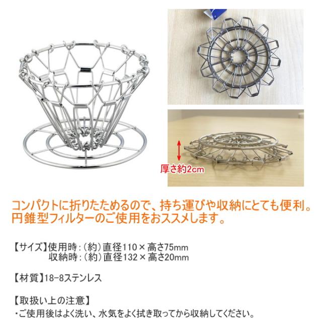 タイト コーヒードリッパー 珈琲 コーヒーフィルター ステンレス製 折りたたみ式 コーヒー用品 佐藤金属興業 SALUS