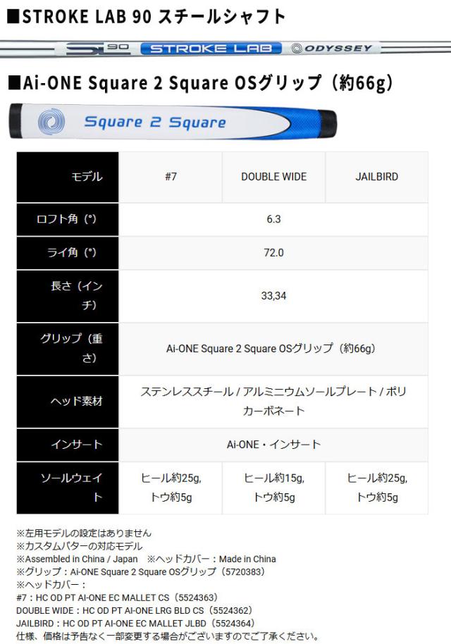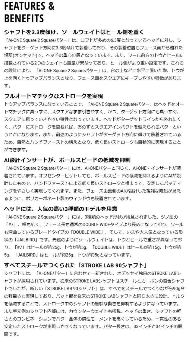 オデッセイ Ai-ONE Square 2 Square パター スチールシャフト装着 2024年モデル[ODYSSEY スクエアトゥースクエア][日本仕様 日本正規品]