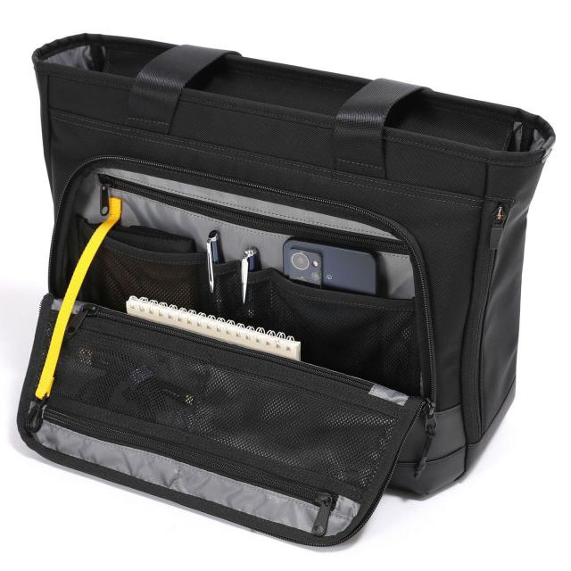 | 進化を遂げた次世代ビジネスバッグのスタンダードモデルとして登場。ビジネスツールを効率的に収納できるポケットレイアウトにより様々なビジネススタイルに対応できるシリーズ「Freelancer FOLD(フリーランサーフォールド)」 耐久性・軽量性に優れた840Dコーデュラナイロンの本体生地を採用。収納物を横ならびに収納できて内容物が見やすく、出し入れもスムーズな機能性抜群の横型トートバッグです。 モバイル機器対応、クッション仕様の背面メインルームは13インチまで収納可能です。(お使いの機器によって異なります) ●前面にフォールディングフロントポケットをレイアウト。開口部が大きく開き前面部分が口折れするので出し入れしやすく収納物の視認性も抜群です。前面側は上下のファスナーが開閉しどちらからも出し入れ可能な2つに分かれたファスナーメッシュポケット、背面側には一番奥にはファスナーポケット・ 手前には収納物の視認性の高いメッシュのオープンポケット×2とペン差し×2、キーフック×1を配置。ビジネスツールの収納に最適で、小さなモバイルワークステーションを形成できます。 ●メインルームは開口部が大きく開いて内容物が確認しやすく書類等の出し入れもスムーズです。トートならではの広々した空間となっております。 ●メインルームの前面側は一番奥にはファスナーポケット、手前には片マチ付きオープンポケット×2を配置。整頓のしやすいレイアウトです。 ●メインルームの背面側にはモバイル機器タブレットやノートパソコンの収納に最適なクッションポケットも装備しております。(〜13インチPC対応可能) ※機器の対応サイズ:機器によって入らない可能性がございます。あくまで目安としてお考え下さい。 ●メインルーム内には外部からアクセスできるボトルホルダーを配置。サイドのファスナーを開けると出し入れできて便利です。 ●コンパクトでスマートなサイズ感。天ファスナー付属で、中身が見えないのでプライバシーを守ることができ、防犯面も安心です。 ●ファスナーの引手には握りやすく持ちやすいジッパープルを付属、操作しやすくスムーズな開閉を実現。 ●持ち手にはまとめることができるホック式のベルト付きです。 ●キャリーオン機能付きなので、出張などでのキャリーケースとの併用も可能です。バッグの背面にキャリーケースのバーを通し、簡単にセットアップできます。両手がふさがらないので便利です。 ●本体には耐久性・撥水性・軽量性に優れた840デニールのコーデュラナイロン生地、前面には610デニールのコーデュラポリエステル生地に撥水性が高く防汚性に優れた耐久性に優れたTPUコーティングを施した生地を採用しました。 ●底面は底足付きで、本体生地はポリエステル生地に撥水性が高く防汚性に優れたPUコーティングを施した生地を使用しています。 |