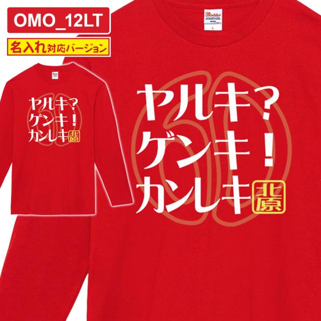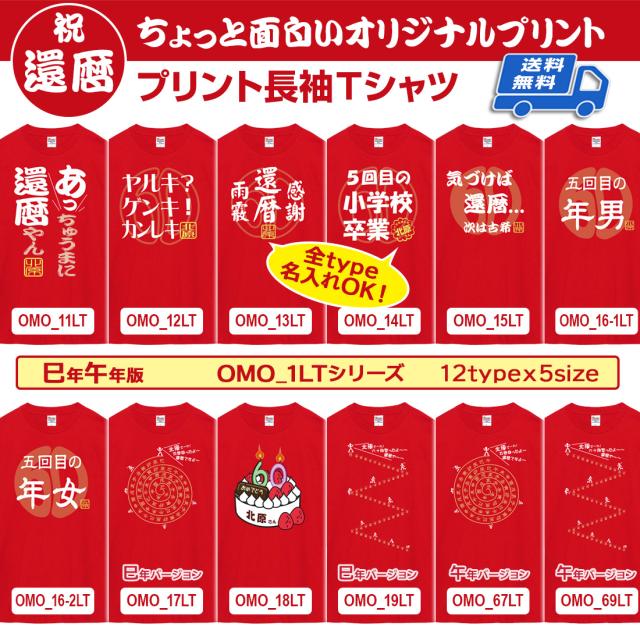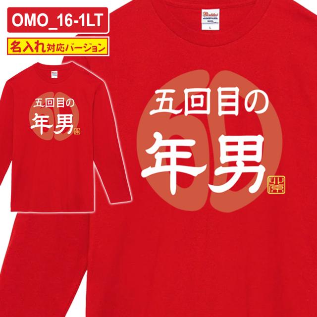 還暦 長袖 Tシャツ 名入れ OMO-1LTシリーズ 巳年 午年 対応版 還暦祝い tシャツ おもしろい プリント お祝い プレゼント ラッピング 赤 レッド おしゃれ サプライズ メンズ レディース 男性 女性 父 母 上司 メール便 送料無料