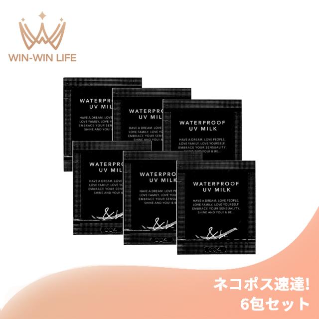 ネコポス速達!アンドビー ウォータープルーフUVミルク 6包セット お試しセット サシェサンプル トライアルセット トラベルサイズ 顔・からだ用日焼け止め 国内耐水性・UV最高値 日中うるおいケア 肌補正 フリー処方 日焼け対策 UVケア &be andbe