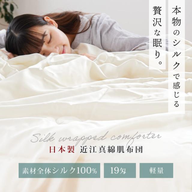 [keyword|真綿布団 日本製 両面シルク100% 掛け布団 シングル 19匁 150×210cm 国産 近江真綿 絹 サテン シルク わた オールシーズン 肌掛け 中掛け 肌布団 シルク100% 美容 天然繊維 国産 真綿 掛けふとん 春 夏 無地 シンプル ナチュラル]