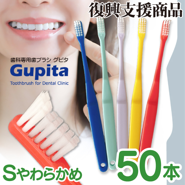 歯科専用歯ブラシ Gupita グピタ (毛のかたさ:Sやわらかめ) 50本セット / 理想の歯ブラシ 全5色 個包装 / 復興支援商品