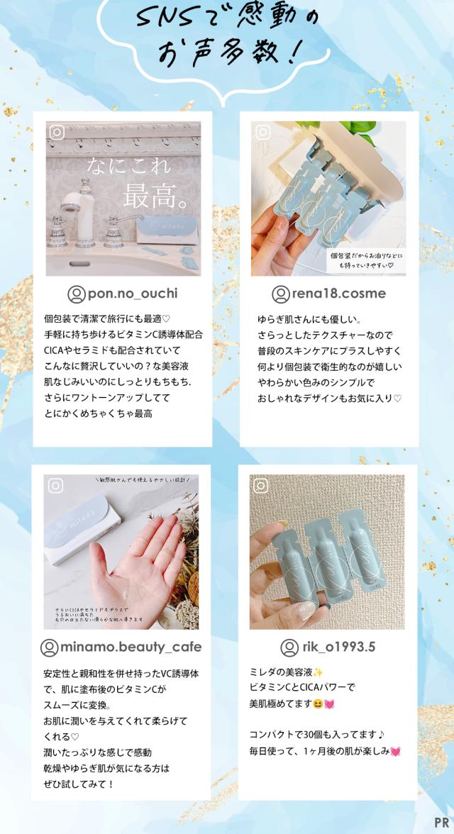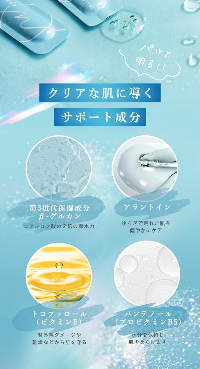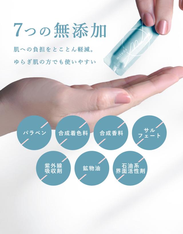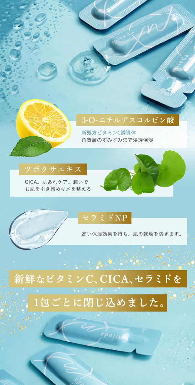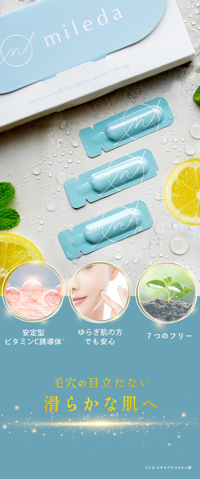 シミケア・保湿・肌荒れを同時にケアできるmileda独自処方の美容液。