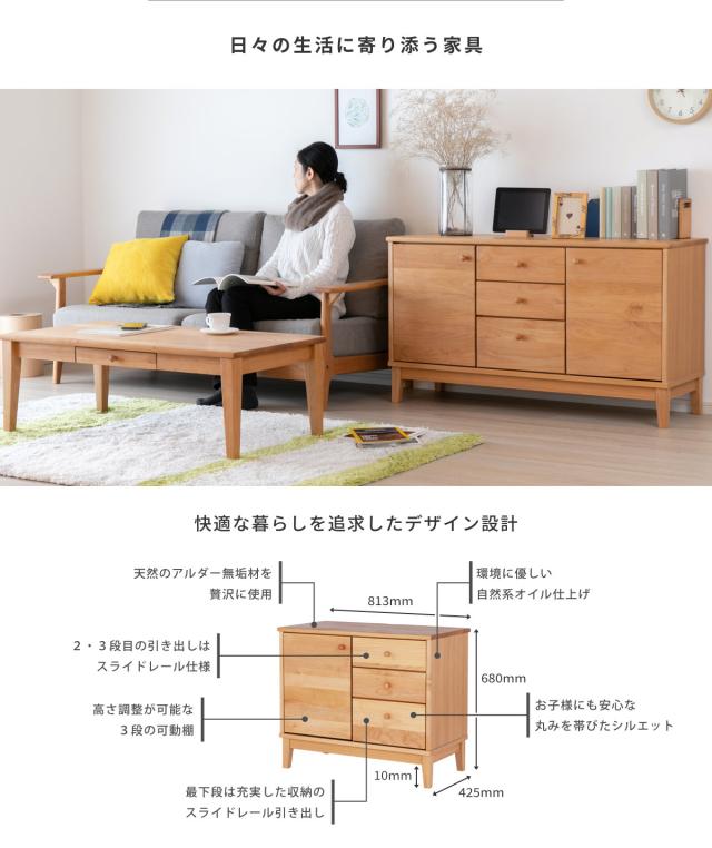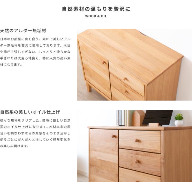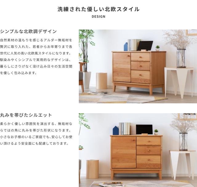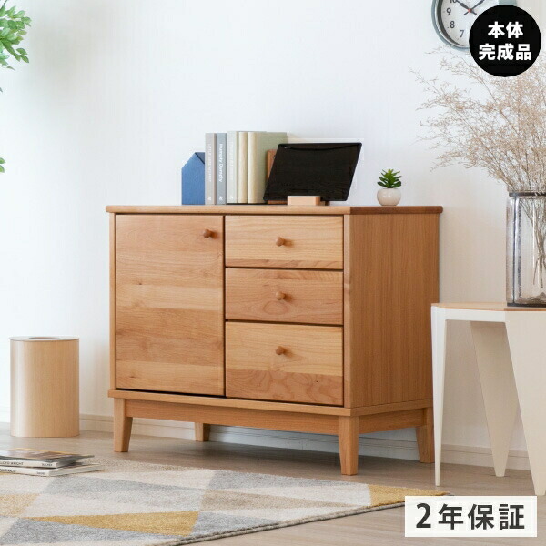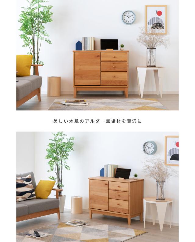 キャビネット リビング 扉付き サイドボード 幅80 リビングボード 収納棚 リビング収納 完成品 収納 北欧 無垢 天然木 木製 引き出し 3段 Wi-Fi モデム ルーター かわいい シンプル ナチュラル ISSEIKI AIRY
