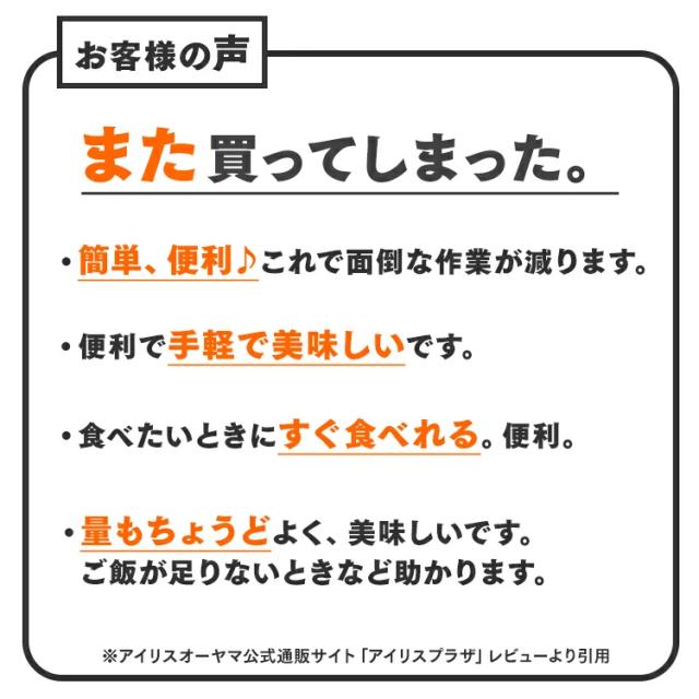 - レンチンで食べる分たげ無駄が無いのがいいので注文をしています。 美味しいのもいいですね。
