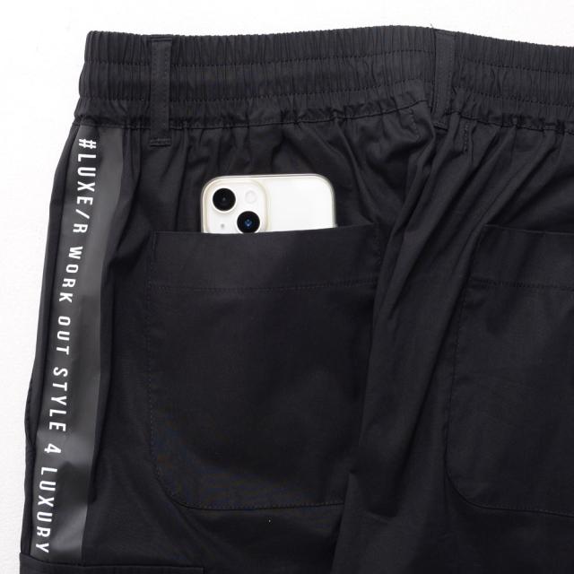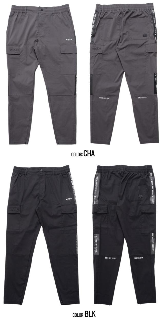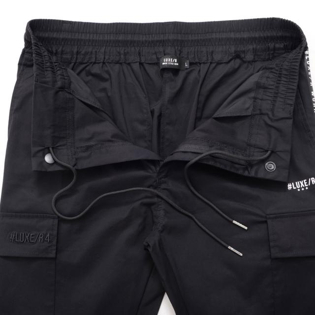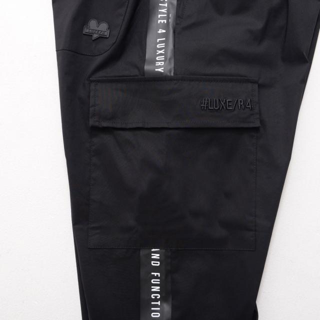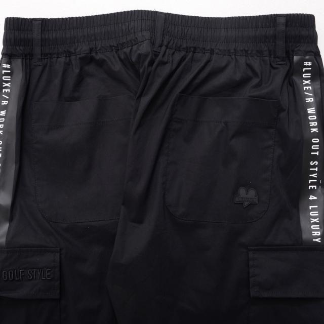 カーゴパンツ メンズ ブランド おしゃれ ゴルフパンツ ストレッチ 伸縮 伸びる 撥水加工 ロゴ ベージュ カーキ チャコール ブラック 黒 M L XL LL 秋 冬 秋冬 細身 タイト スリム カジュアル スポーツ スポーティ LUXE R ラグジュ ゴルフ ゴルフウェア [45854]