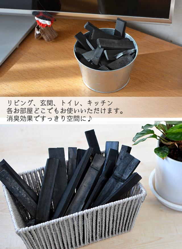 竹炭には、空気の脱臭や除湿、水分のろ過・浄化効果があるとされています。