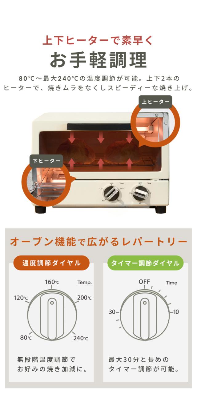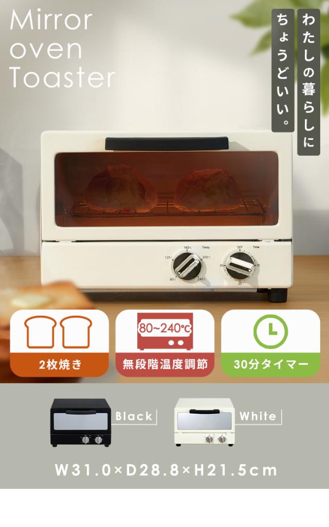 [検索用:オーブントースター パン2枚焼き 鏡面加工 シンプル シック おしゃれ 30分タイマー 80℃-240℃ 温め直し トースト クッキー グラタン キッチン家電 ]