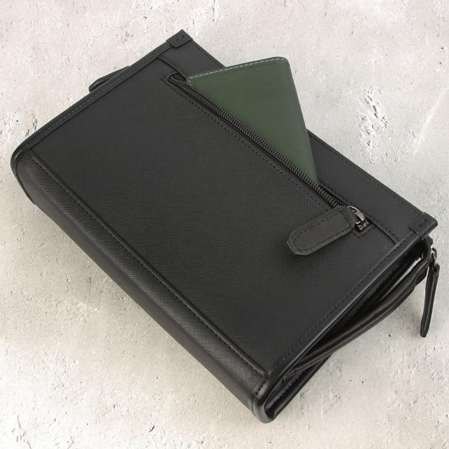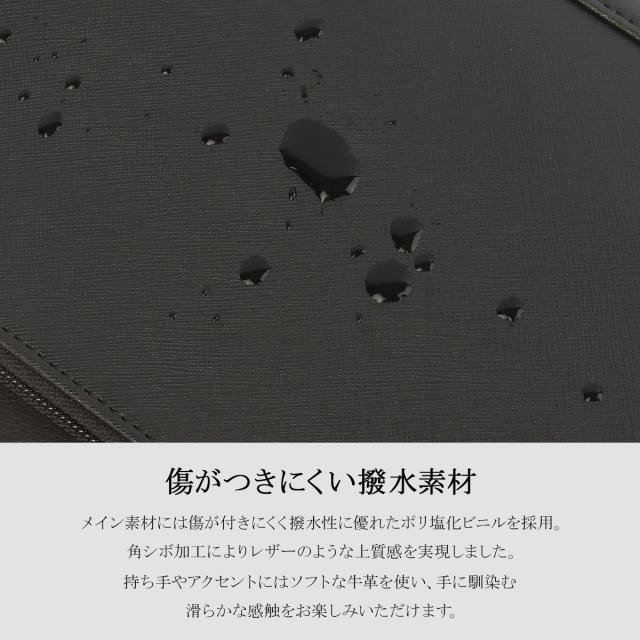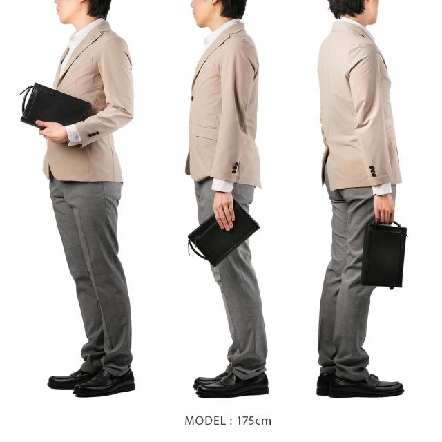 | シンプルな素材感とデザインのタケオキクチのメンズポーチ。シンプルながらも洗練されたフォルムで、冠婚葬祭から普段使いまで幅広くお使いいただけます。 内側にはファスナーポケットが1つとメッシュポケットが1つあり、ご祝儀袋がぴったり収まるサイズ感で冠婚葬祭にもぴったりです。前面と背面には使いやすいファスナーポケットが備わり、スマートフォンや小物の収納に便利です。 メイン素材には傷が付きにくく撥水性に優れたポリ塩化ビニルを採用し、角シボ加工によりレザーのような上質感を実現。持ち手やアクセントにはソフトな牛革を使い、手に馴染む滑らかな感触をお楽しみいただけます。 |
