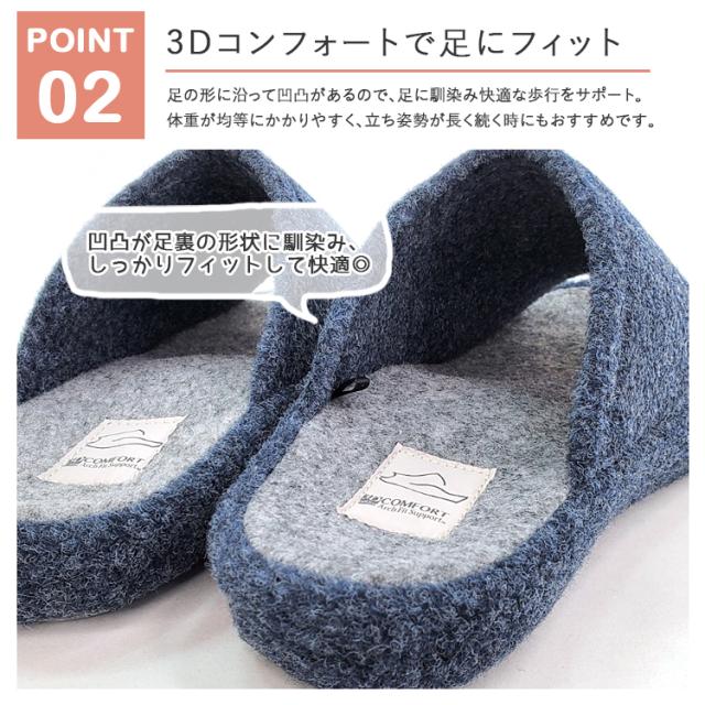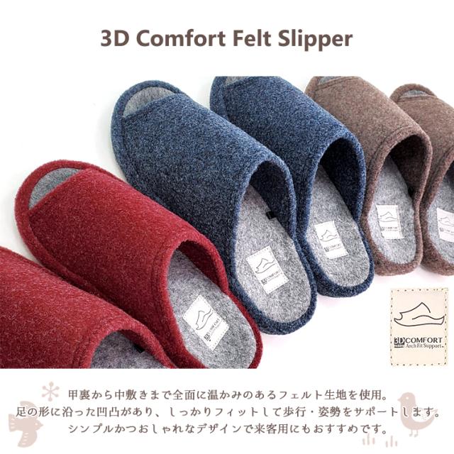 3D コンフォートスリッパ あったか フェルト スリッパ レディース メンズ 歩きやすい 疲れにくい フィット 防寒 暖かい ルームシューズ 部屋履き 室内履き 来客用 立ち仕事 疲れない 寒さ対策 秋冬 冬 春先 おしゃれ コンフォートフェルトスリッパ agesugi_snk