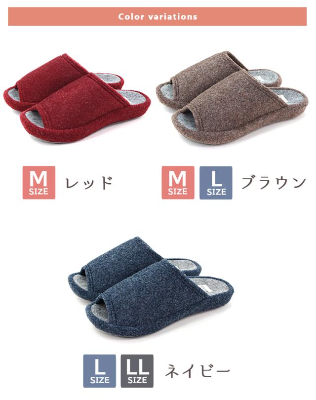 温かみのあるほっこりとしたフェルト素材が足を包み込みます。 3Dコンフォート仕様で足裏への負担を軽減! 足の形に沿って凹凸があるので、しっかりフィットして歩行・姿勢をサポートします。 体重が均等にかかりやすく、立ち姿勢が長く続くときにもおすすめです。 底はしっかりとしたEVA素材で、下からの冷えも防ぎます。 幅広い3サイズ展開なので、家族で揃えたり、来客用に揃えて統一感を出すのも◎ ■適応サイズ(約): [Mサイズ] 22.5cm〜24.0cm [Lサイズ] 24.5cm〜26.0cm [LLサイズ] 26.5cm〜27.5cm ※サイズ表記は目安となります。 ■素材:[甲部分]ポリエステル、[底]EVA ■中国製 <注意事項> ※お客様のご覧になられますパソコン機器及びモニタなどの違い、また室内、室外での撮影により実際の商品素材の色と相違する場合もございます。 【2411r】 |