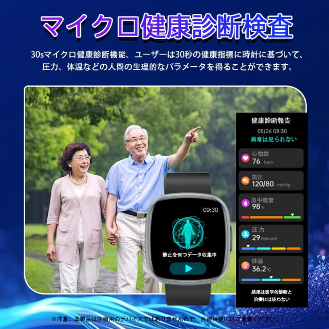 ※注意: ※当商品は医療機器ではありません。提供されたデータや情報はあくまで参考用です。 ※故障を避けるために、5V2A以下の非急速充電アダプターでの充電をおすすめします。 【キーワード】 プレゼント 父の日 母の日 敬老の日 誕生日 夏祭り ギフト