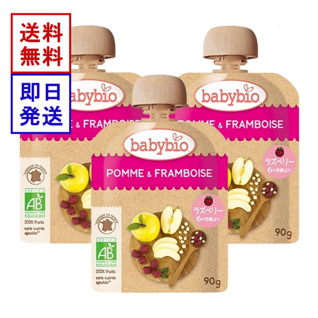 ベビービオ ベビースムージー アップル ・ ラズベリー 90g 3食セット オーガニック 無添加 赤ちゃん 6ヶ月頃から 離乳食 おやつ フルーツ 野菜