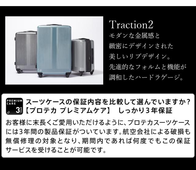 【新商品】日本製 エース(ACE) PROTECA/プロテカ トラクション2 スーツケース 日本製 96-115リットル 7〜10泊 キャスターストッパー 01494 容量拡張 エキスパンダブル 預け入れ国際基準サイズ