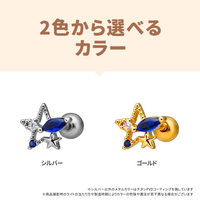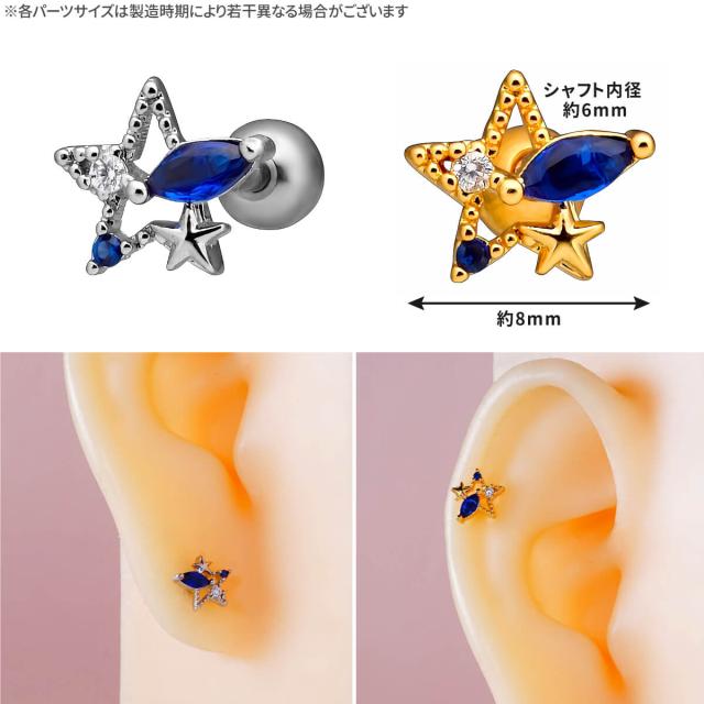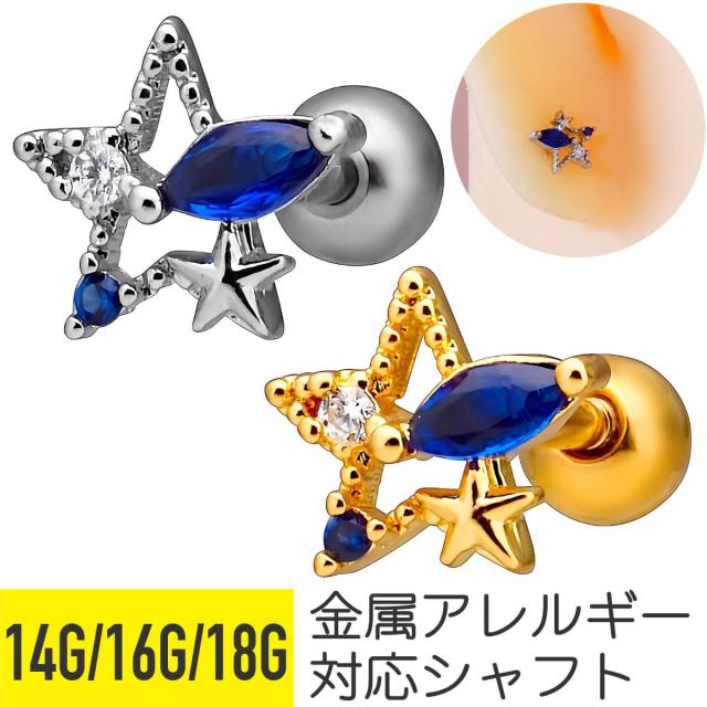スター ブルー ジュエル ストレートバーベル 14G 16G 18G サージカルステンレス ジルコニア シルバー ゴールド 軟骨ピアス ボディピアス
