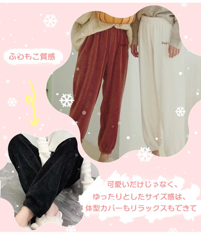秋冬ルームパンツ ルームウェア 起毛 超保温 あったか もこもこ 厚手 レディース パジャマ 部屋着 ふんわり 肌触り 柔らかい ズボン 可愛い ウエストゴム 暖かい agesugi_sfa