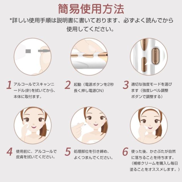【使用後の過ごし方】美顔ペンを使った後は、シャワーは当時から可能ですが、お手入れした部分を擦らず水に当たらないように気をつけてください。メイクはお手入れ箇所を避けて、当日からも可能です。場合によっては、1〜2回の追加ケアをお勧めすることがあります。