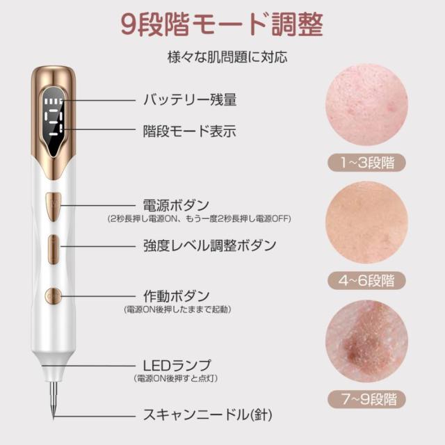 【即納】レーザーペン レーザー除去ペン レーザースポットペン 最新モデル 美顔器 LED表示 9段階レベル シミ取り イボ 人気 口コミ 痛みがなく 手軽に除去 そばかす 美顔 美肌 家庭用 お歳暮