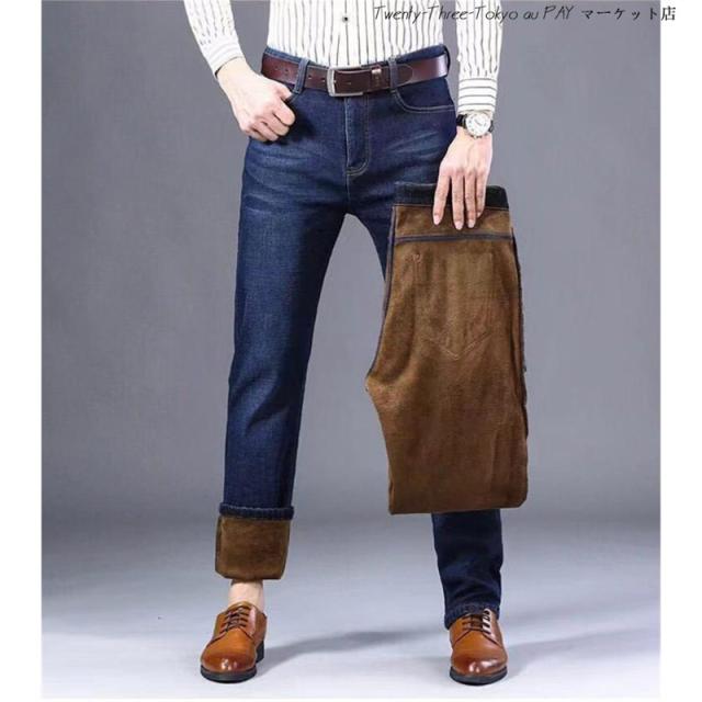 送料無料 デニムパンツ メンズ ジーンズ ジーパン 2type 裏起毛 ボトムス チノパン 暖かい 極暖 無地 暖パン 厚手 ズボン カジュアル 春物