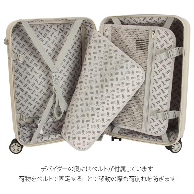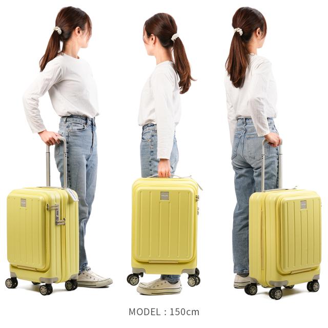 | 世界的に有名な女性誌「マリ・クレール」をコンセプトとしたブランドのトラベルライン「VOYAGE / ボヤージュ」。スーツケースを立てたまま、前面のポケットから荷物の出し入れが可能なフロントオープン仕様。フロントポケット内にファスナーポケットがあり、細かな荷物の収納に便利です。 ボディは傷が目立ちにくいシボ付き加工に。後輪の双輪キャスターには、電車での移動時に転がりを防止するストッパー付。国内線機内持ち込み対応で、1〜2泊程度のご旅行に最適です。 |