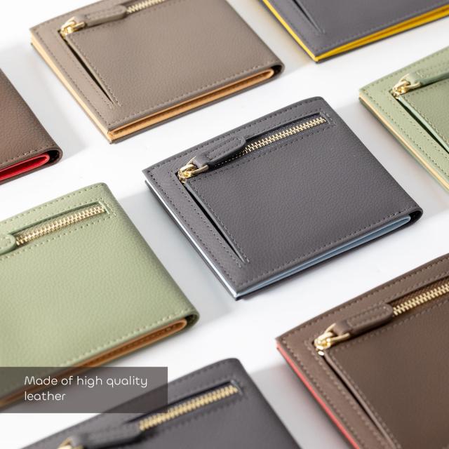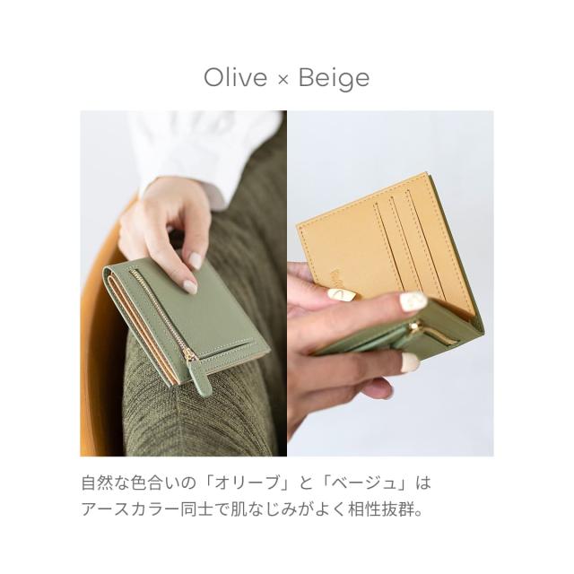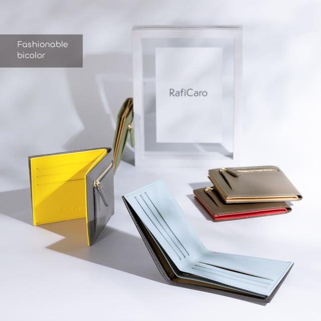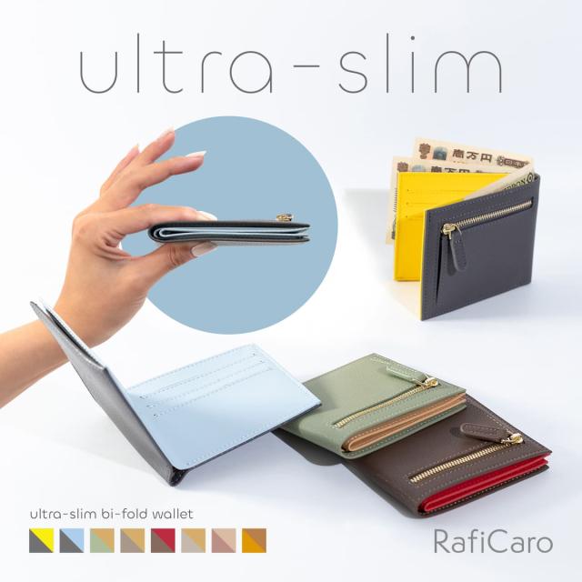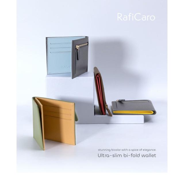 【Pontaパス限定920P還元】RafiCaro 薄さ9mmの牛革二つ折り財布 レディース ミニ財布 革 大容量 コンパクト バイカラー YKKファスナー 薄い 小さい財布 小銭入れ カードケース キャッシュレス ミニウォレット 薄型