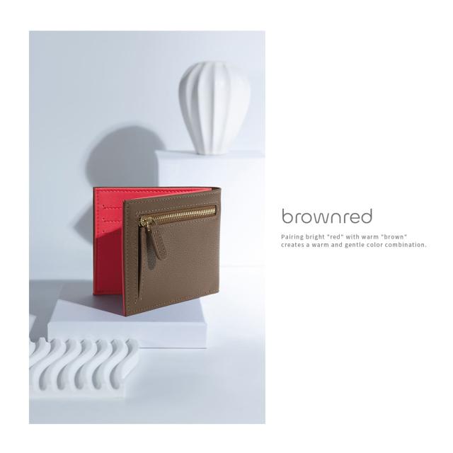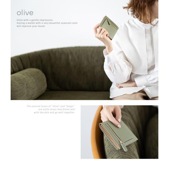 【バイカラーがアクセント】シックなアースカラーに合わせた鮮やかなインナーが、コーディネートのスパイスに。牛革ならではの柔らかな手触りもお楽しみいただけます。上品なゴールドカラーのYKK製ファスナーに、表地と同素材の引き手を合わせました。