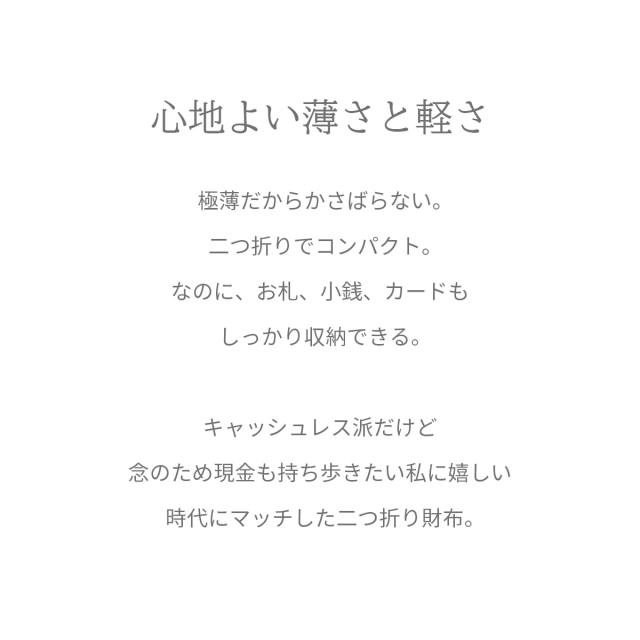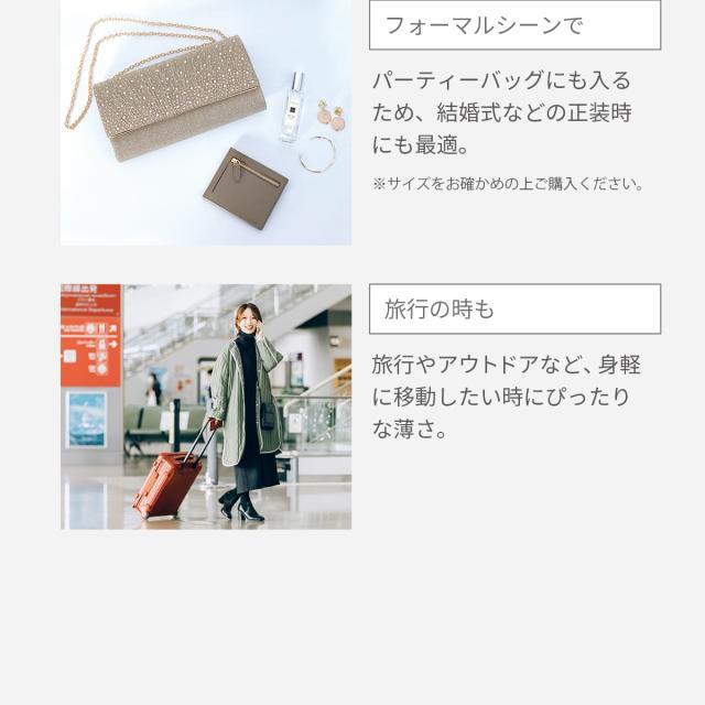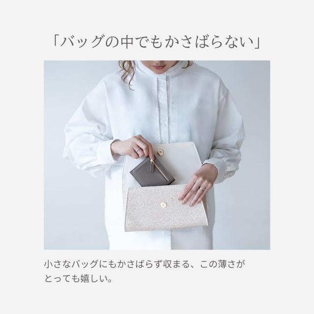 小さめバッグやポケットにすっきり収まるコンパクトウォレットです。