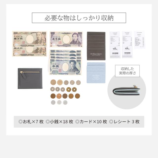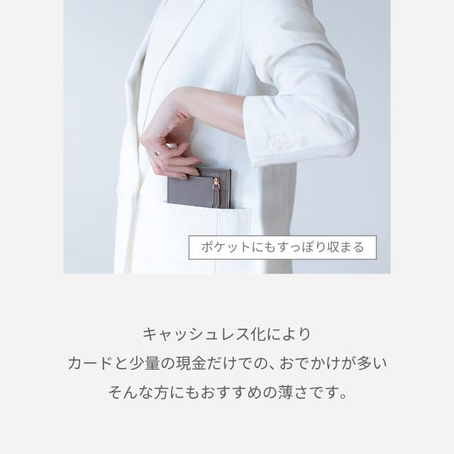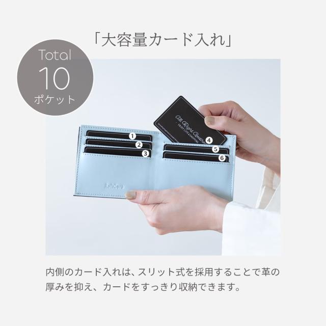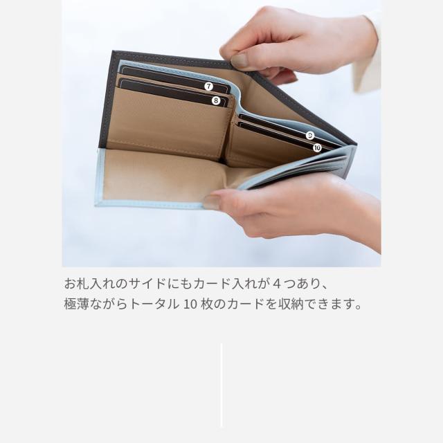 【薄型コンパクトでも大容量】小さめバッグやポケットにすっきり収まるコンパクトウォレットです。薄くてもカードはしっかり10枚収納。お札入れは二層構造でレシート整理もばっちり。小銭入れは大きく開く片側マチ仕様。人気ブランドならではのこだわりが詰まったアイテムです。