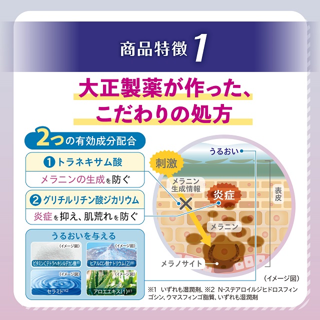 ●クリニラボ VIOLAOクリアは、メラニンの生成を防ぐ、トラネキサム酸と、炎症を抑え、肌荒れを防ぐグリチルリチン酸ジカリウム配合
