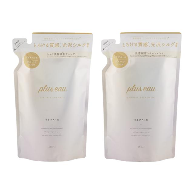 plus eau プリュスオー リポアシャンプー トリートメント 詰替え 350ml 2本セット レフィル ヘアケア シルク美容液 補修 ダメージ[ギフトラッピング対応]