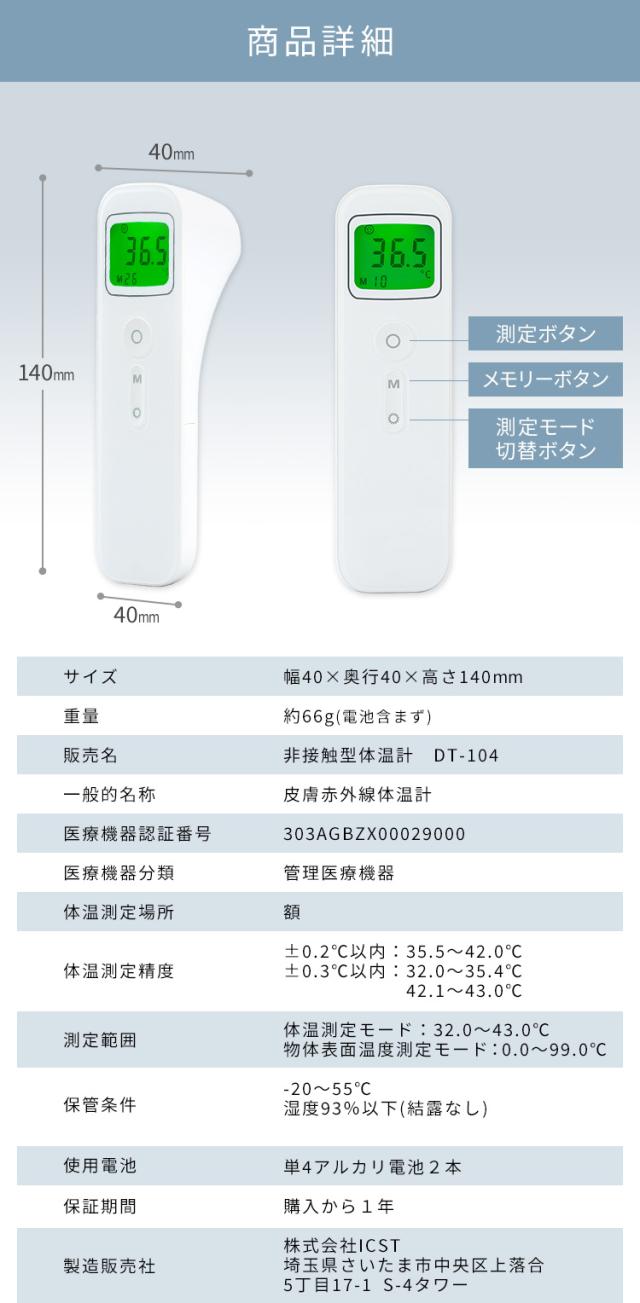 体温計 非接触 非接触体温計 医療機器認証 早い スピード検温 非接触型体温計 電子体温計 高精度 デジタル コンパクト おでこ 額 家庭用 検温 大人 子供 風邪 発熱 医療 介護 健康管理 アイリスオーヤマ DT-104 * 【管理医療機器】