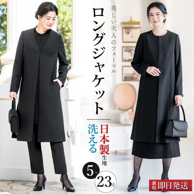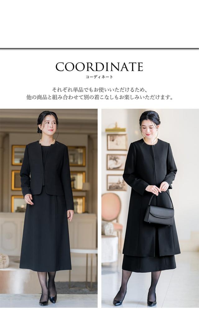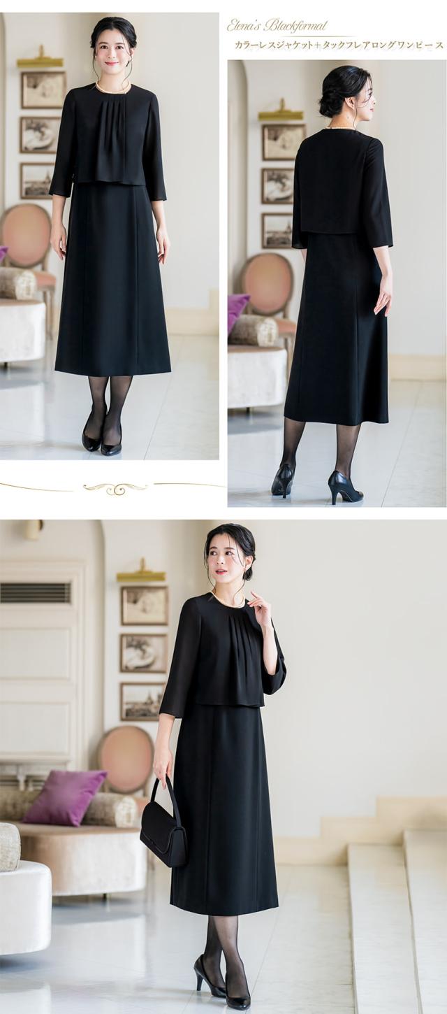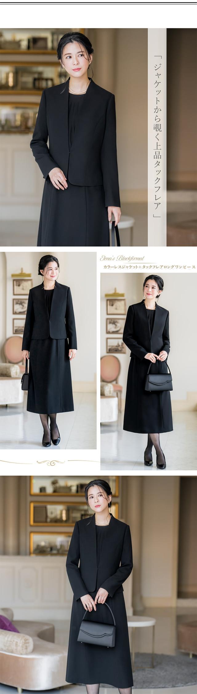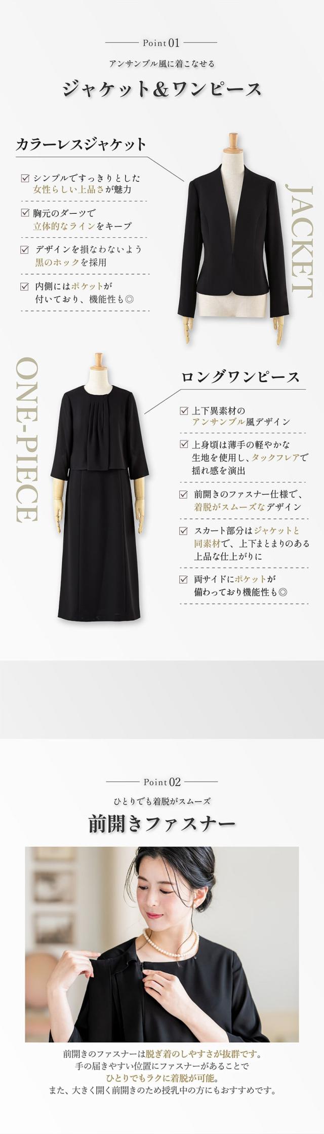 喪服 レディース 2点 セット ジャケット ワンピース 前開き 洗える ロング アンサンブル タックフレア ブラックフォーマル 大きいサイズ 小さいサイズ 体型カバー 冠婚葬祭 お盆 女性 入学式 卒業式 春 夏 秋 冬