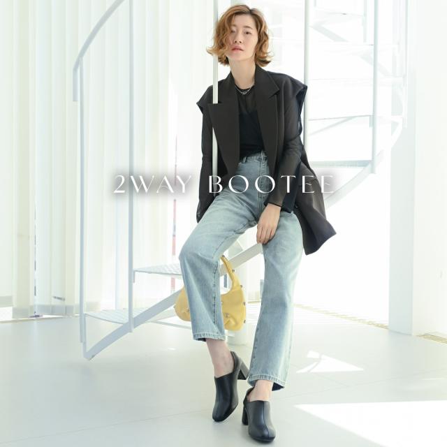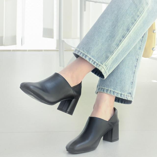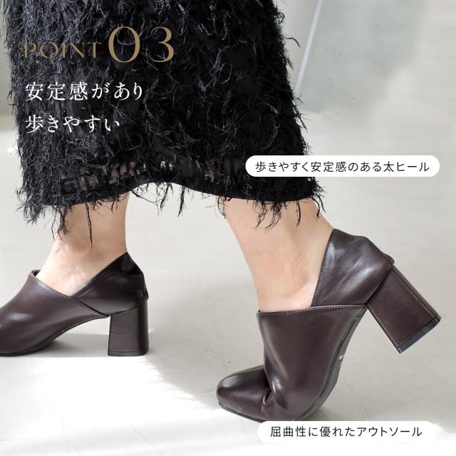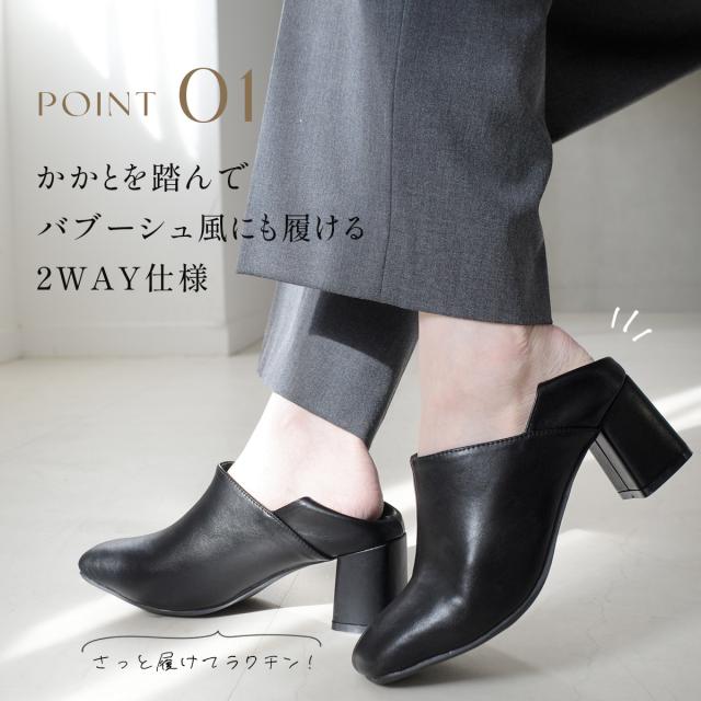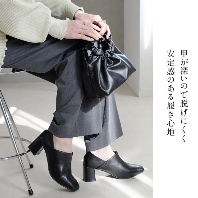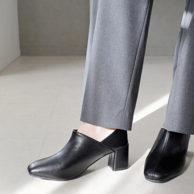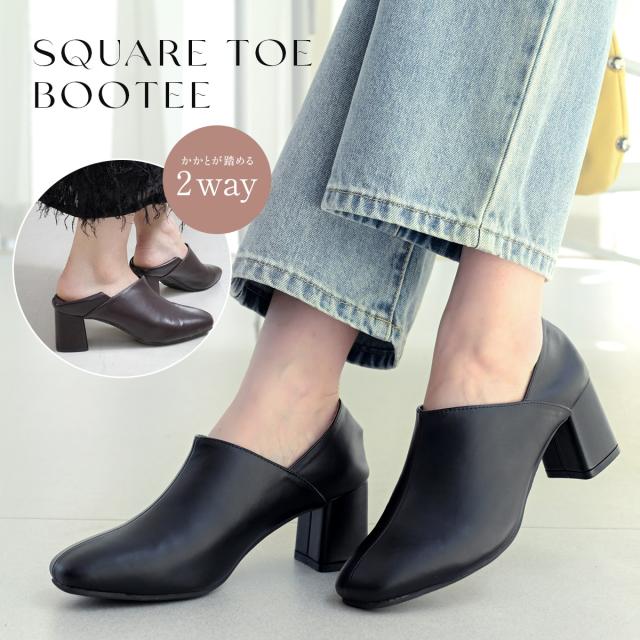 ブーティ ブーツ 歩きやすい 履きやすい 2WAY バブーシュ風 ブーティ 6.5センチヒール 柔らか レディース 太ヒール スクエアトゥ ブラック 22.5 24.5 クッション 低反発 黒 シンプル 秋新作 送料無料 RYL201 MJ4036 アミアミ あみあみ amiami