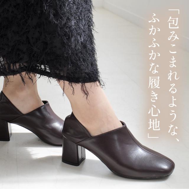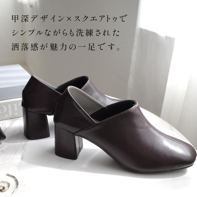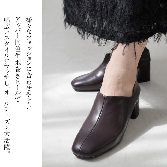 様々なファッションに合わせやすい、アッパー同色生地巻きヒールにリニューアル。甲深デザインとスクエアトゥのバランスが程よくトレンド感をプラスしてくれます。