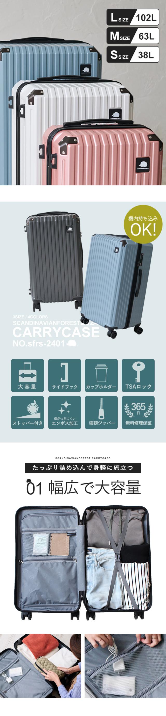 スーツケース キャリーケース SCANDINAVIAN FOREST キャリーバッグ 軽量 頑丈 M size mサイズ 大容量 4泊 5泊 5泊 63L ドリンクホルダー キャスターロック付き 静音 国内旅行 海外旅行 TSAロック かわいい オシャレ 北欧 moz【sfrs-2401-M】