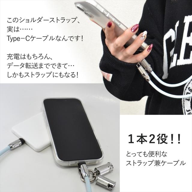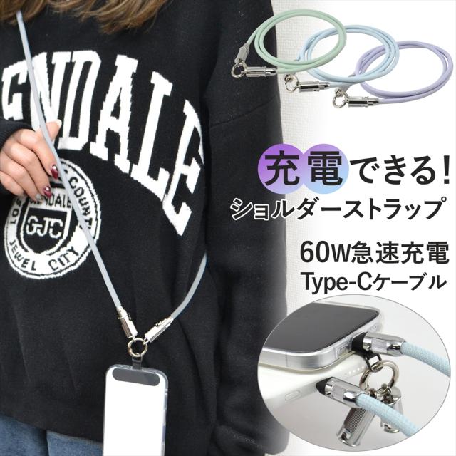 ケーブルスマホショルダー スマホショルダー ストラップ 充電 ケーブル 60W 急速充電 PD対応 Type-C USB-C 首かけ 斜めがけ ショルダー iPhone16 Pro iPhone15 ショルダーストラップ スマホストラップ アンドロイド 充電できる 2Way パステルカラー 120cm データ転送