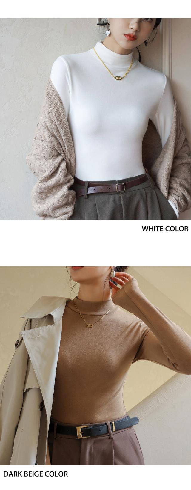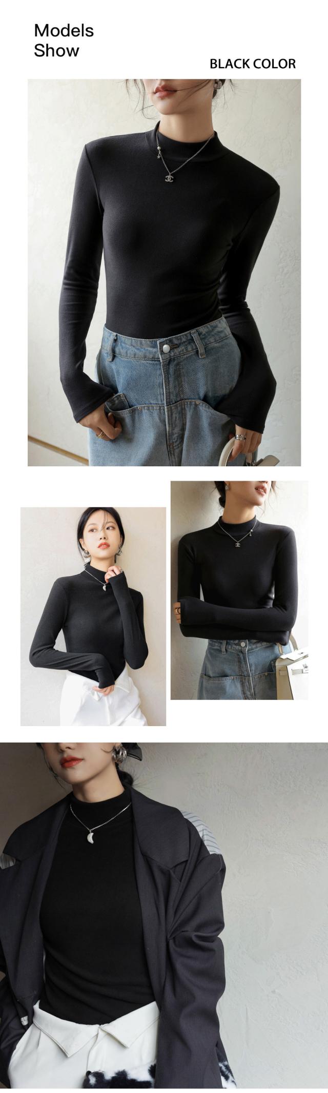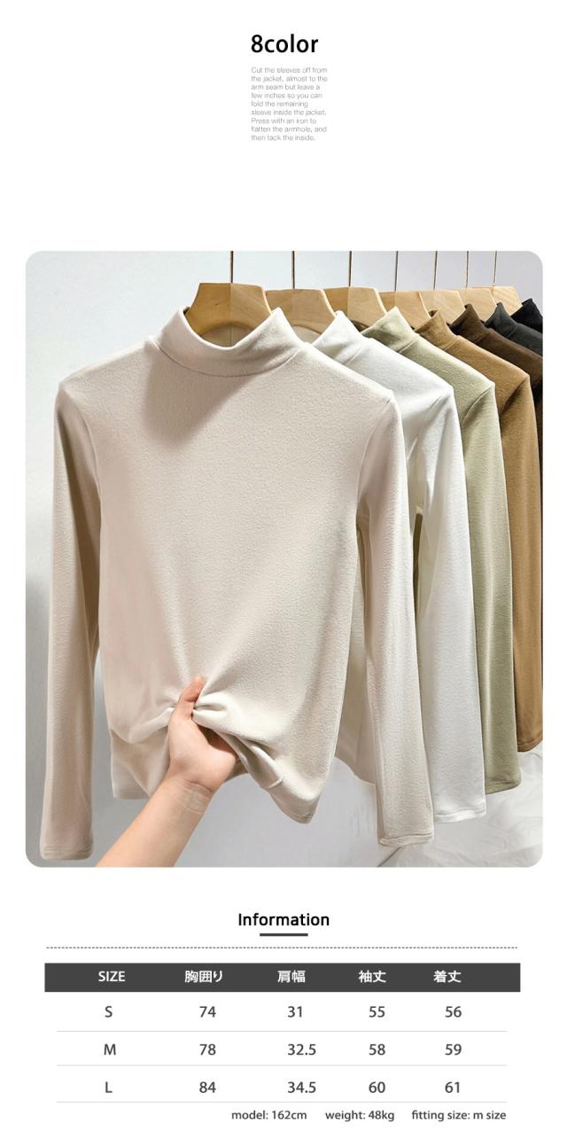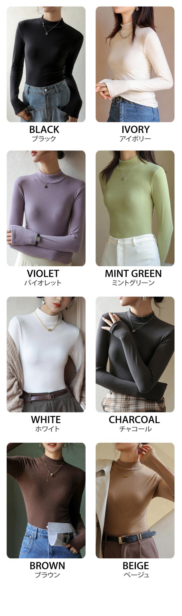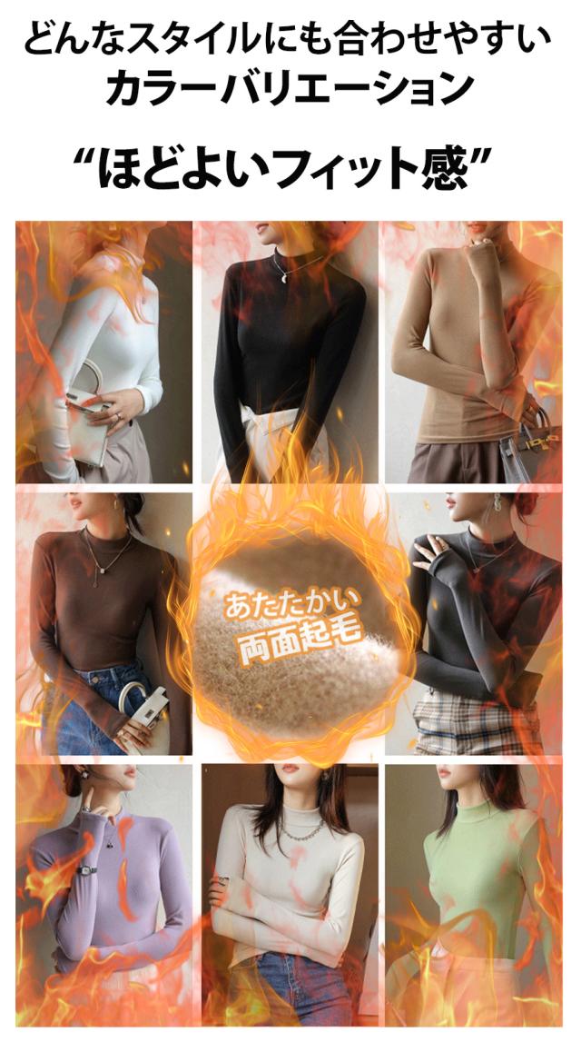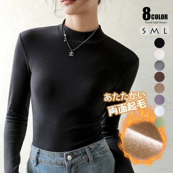 カットソー トップス レディース 秋 冬 長袖 Tシャツ インナー ロンT レディース服 ニット セーター タートルネック プチタートルネック きれいめ 静電気防止 両面起毛 伸縮性 シンプル 無地 ストレッチ スリム 8カラー
