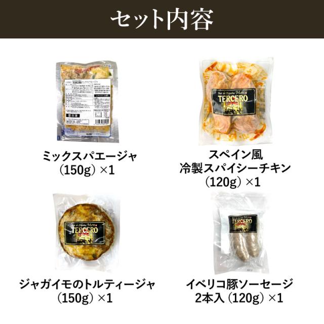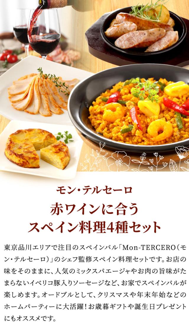 モン・テルセーロ 赤ワインに合うスペイン料理4種セット グルメ ギフト 内祝い お祝い パエージャ パエリア チキン トルティージャ ソーセージ オードブル スペインバル おうちバル