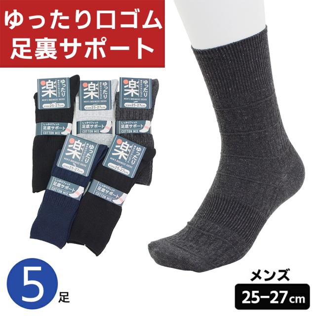 口ゴム ゆったり 足底 Wサポート 男性用 靴下 5足セット リンクス柄 吸湿 25-27cm ビジネス プライベート【メール便送料無料】しめつけ解消 ゆるい ソックス 高齢者 シニアファッション 幅広ソックス 介護 メンズ 爽やか 綿混素材 足首ゆったり agesugi_sfa