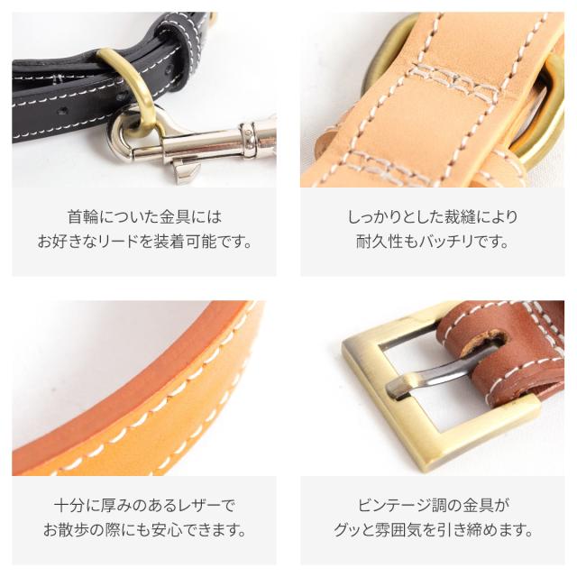 サイズで選べる本革仕様の首輪です。高級感のあるイタリアンレザーが愛犬をオシャレに彩ります。