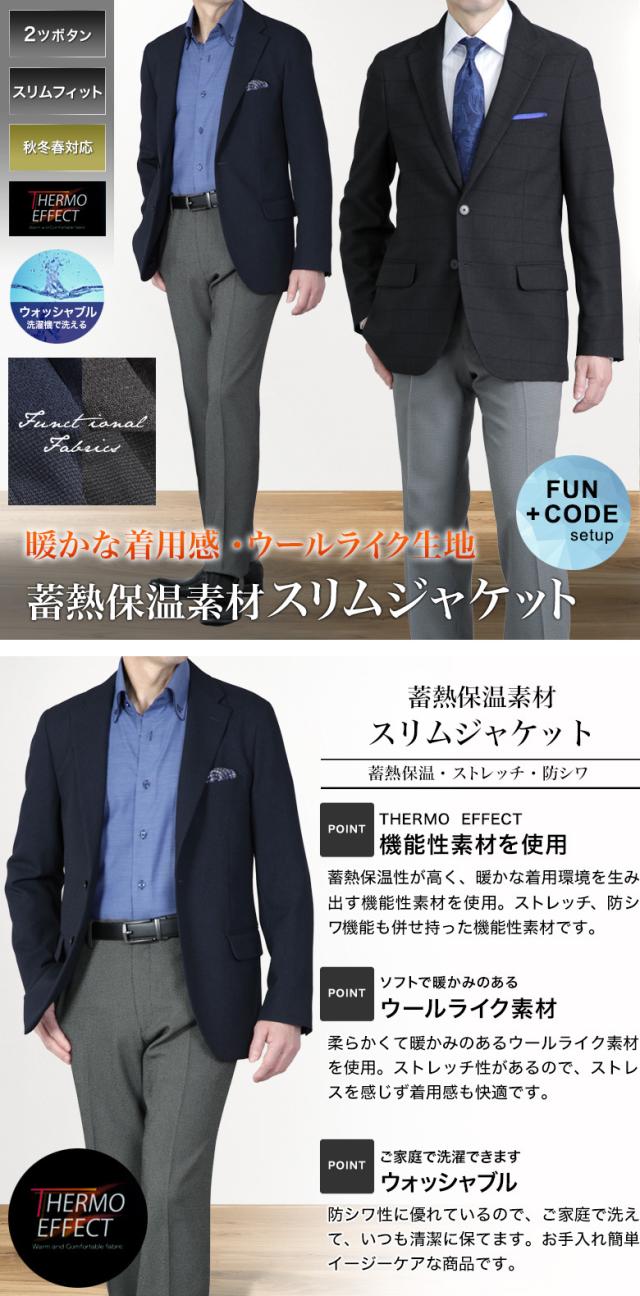 ジャケット ウールライク 蓄熱保温 THERMO EFFECT サーモエフォクト ストレッチ 洗える ウォッシャブル シングル 2ツボタン メンズ ビジネス カジュアル 秋冬春 おしゃれ【FUN+CODE setup】